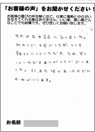 初めてで不安でしたが、とても親切にしていただき、なお安くしていただきありがとうございました。