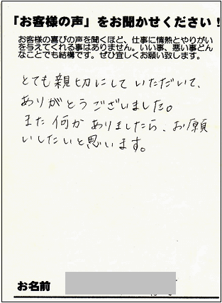 修理依頼およびハガキも書いてくださり、ありがとうございました。